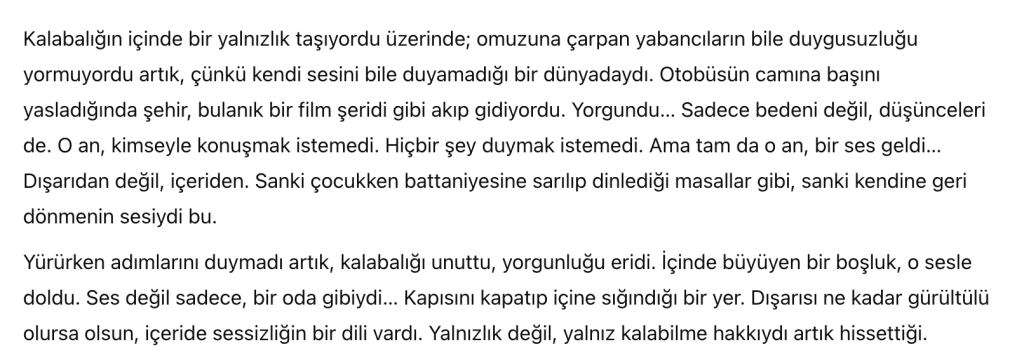 - Hikâyenin amacı: içsel huzur, duygusal sığınak, kendine dönme hissi.”