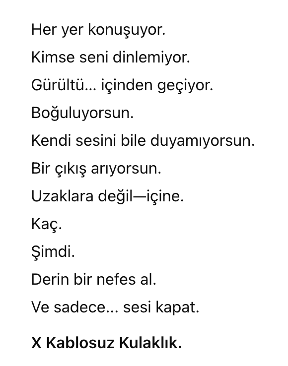 - Son cümlede sadece şöyle desin: ‘X Kulaklık. Seni duyan tek şey.’